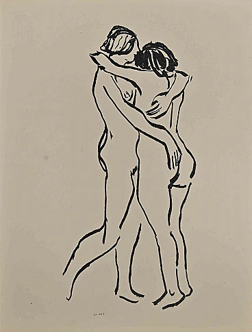 Erotic Scene is a beautiful lithograph on ivory-colored paper, realized in the 1920s by Albert Marquet (Bordeaux, 1875 - Paris,1947).Monogrammed on the plate on the lower margin. Stamped on the rear "Collection of Pecci-Blunt"From the Suite L'Académie des Dames, Open Edition in New York of "325".Good conditions with minor foxing.Albert Marquet (Bordeaux, 1875 - Paris,1947), French painter and close friend of Henri Matisse, Marquet is often associated with the Fauves ; nevertheless, some critics consider his art closer to that of Édouard Manet and the Impressionists . After 1909, he calmed the chromatic violence of his earliest works, and began using simplified forms and wide brushstrokes; he painted nudes, but most of all fluvial and marine landscapes. Marquet is considered a landscapist who painted scenes of Paris and of the lands he visited. The French painter often incorporated sea or rivers in his artworks, boasting his expert rendering of the silvery quality of light reflecting on water (like in Port de Marseille , 1924).