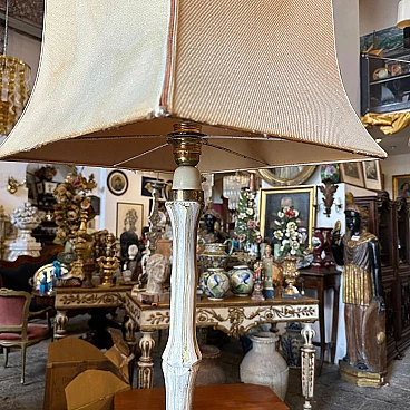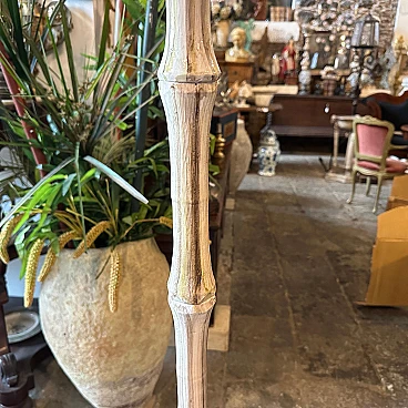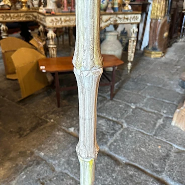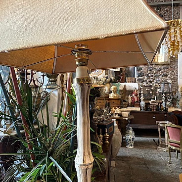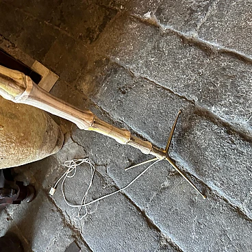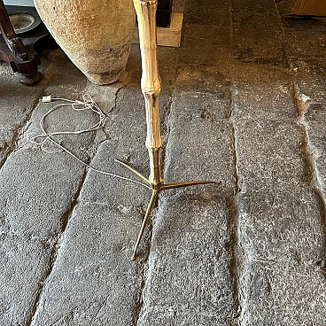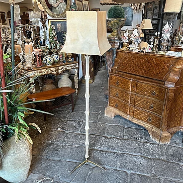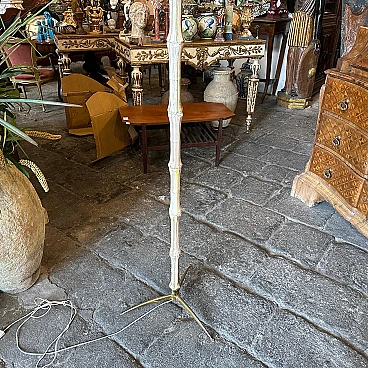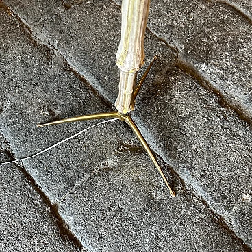 A brass and hand-painted floor lamp designed and produced in Italy in the 1950s. The brass is in original patina, the hand-painted ceramic is in perfect condition. The floor has been rewired and needs a standard e27 bulb. The lampshade is in poor condition and we are selling the lamp without it. The height indicated in the dimensions is without lampshade. This Italian floor lamp is more than just a source of lighting: it is a piece of art that reflects the elegance and ingenuity of its time. Its timeless design and superb workmanship ensure that it will remain a valuable addition to any mid-century inspired interior.