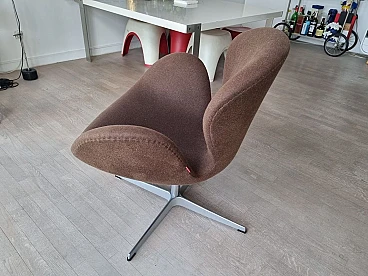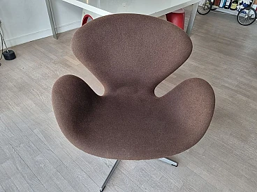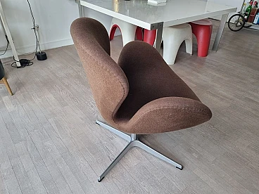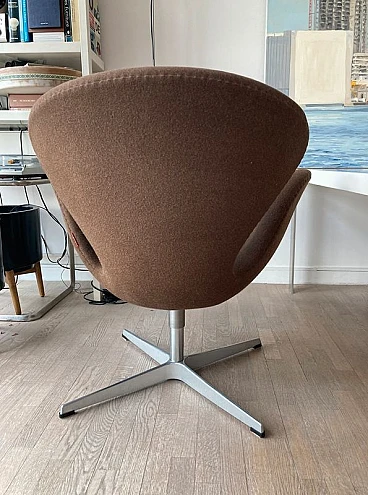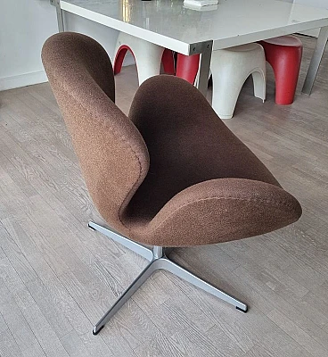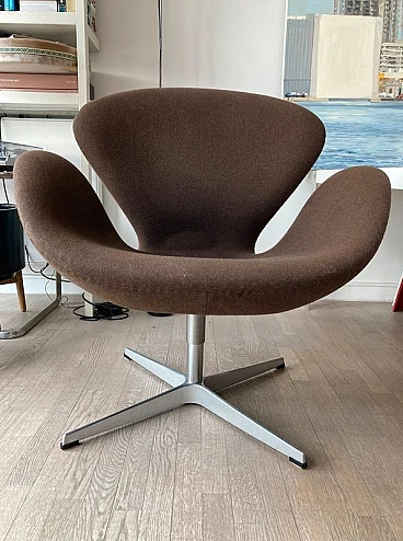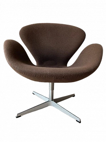 Swan 3320 chair by Arne Jacobsen for Fritz Hansen (designed 1958). Aluminum structure and brown wool fabric upholstery Cat A: Divina 3 Kvadrat 346. Produced by Fritz Hansen A/S Denmark in 2008. Very well kept, excellent condition with minimal signs of use. Seat height: 44 cm.