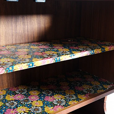 Beautiful sideboard furniture, Italian design and production around the 1960s. Solid wooden structure, two doors in the part high with a shelf, and two doors and two shelves in the lower part. Concealed brass hinges. There are signs of the upper surface, also a stain on the countertop (see photo). Excellent furnishing accessory, also usable as office furniture, bookcase, etc.