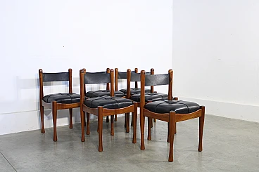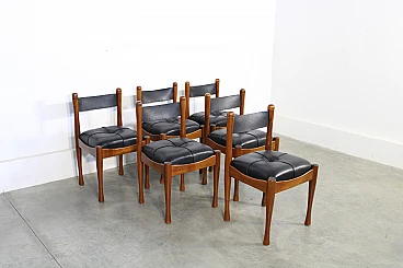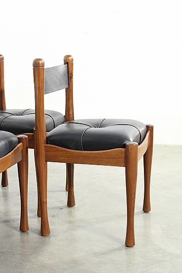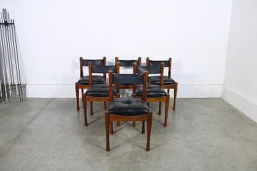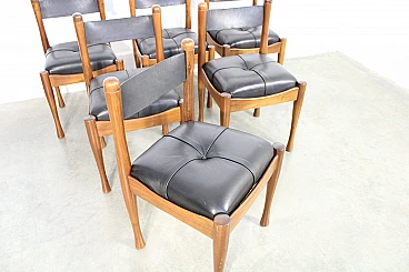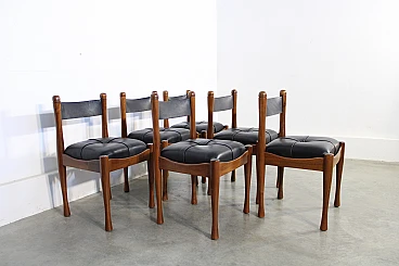Set of six chairs by Silvio Coppola for Bernini, 1970s. Walnut structure, leather seat and back. Wood in perfect condition, leather with some signs of time but excellent.