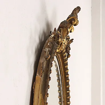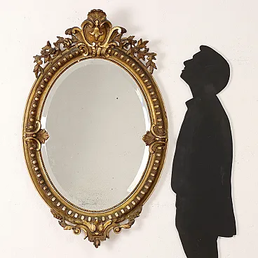 Oval mirror with gilded frame and curl and leaf motifs