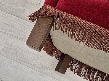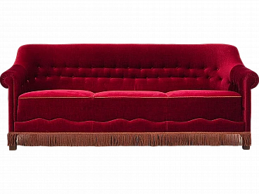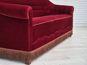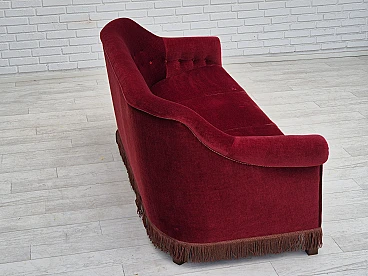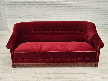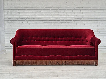Danish three-seater cherry red velvet sofa, 1960s