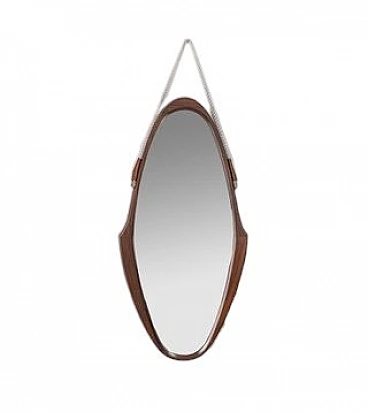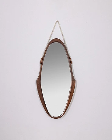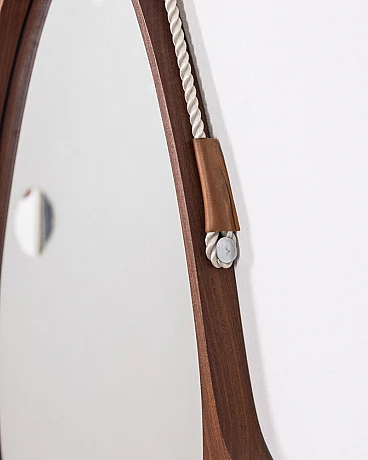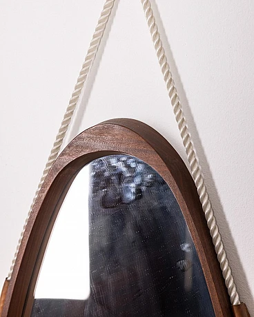 Oval mirror with wooden frame and rope, 1960s