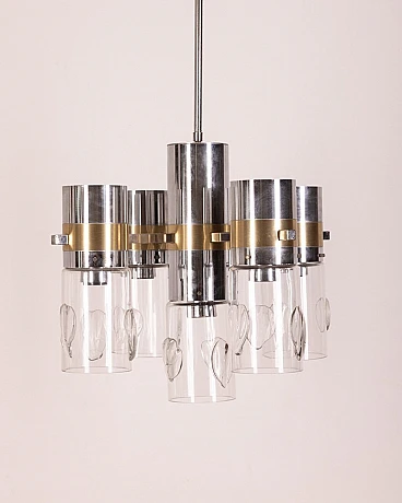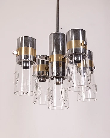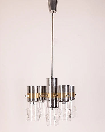 Ceiling lamp in metal and glass by Gaetano Sciolari, 1970s