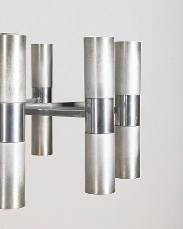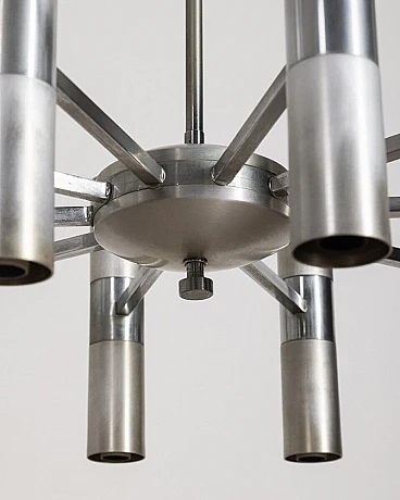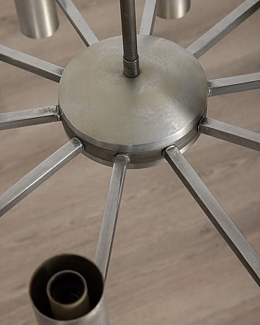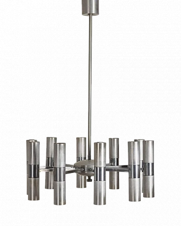 Chandelier with chromed metal structure with twenty lights, 1970s.