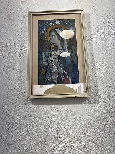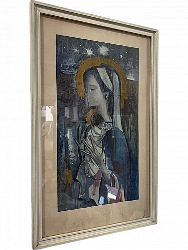 Mixed media painting on paper by Roser Agell Cisa (1924-2021) depicting a woman with a newborn baby. Good conservative condition, with signs of time due to age (see photos).