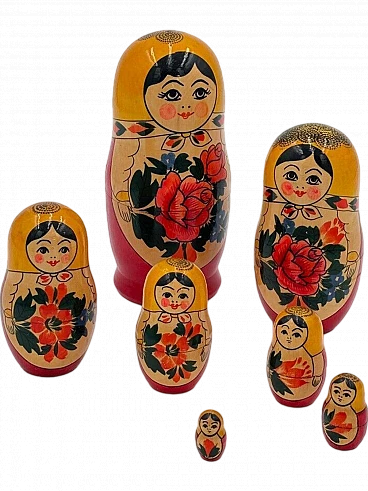7 Matryoshka dolls in painted wood, 1980s