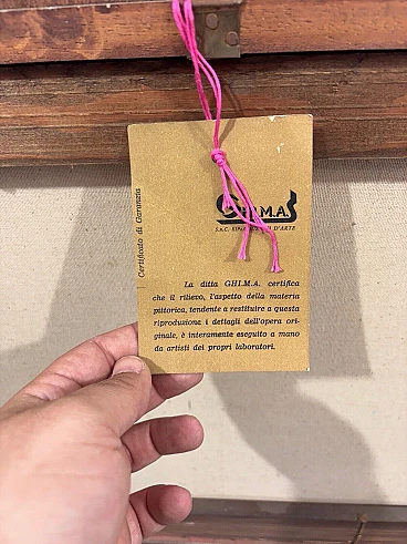 Rembrandt Van Rijn (1606-1669). GHI.M.A Reproduction Authorized. Technique: oil on canvas. Measurements: Height 57 cm; Width 68 cm. The GHI.M.A. company certifies that the relief, the appearance of the pictorial material, which tends to restore the details of the original work to this reproduction, is entirely hand-made by artists in their own laboratories. In good conservative condition, with signs of aging due to use and age. (See photo)