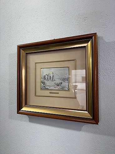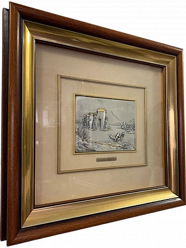 Sul Fiume, painting on silver plate, 1970s. Measurements: Height 44 cm; Width 49 cm. In good conservation condition, present signs of time due to use and age. (See photo)