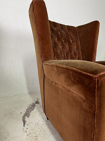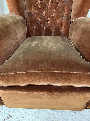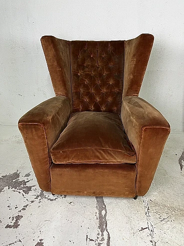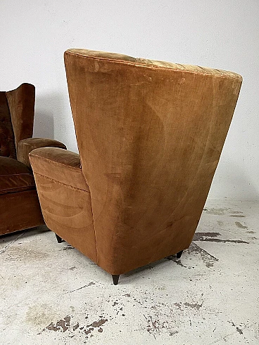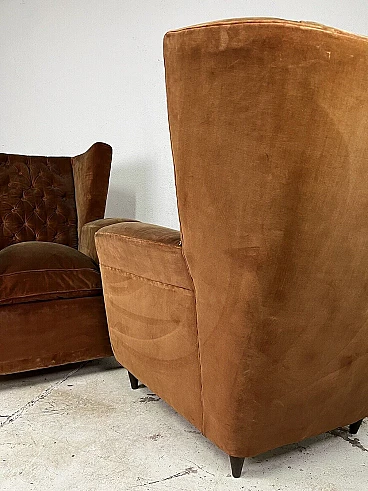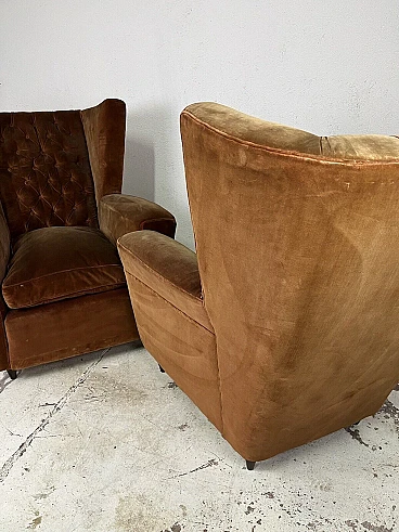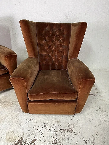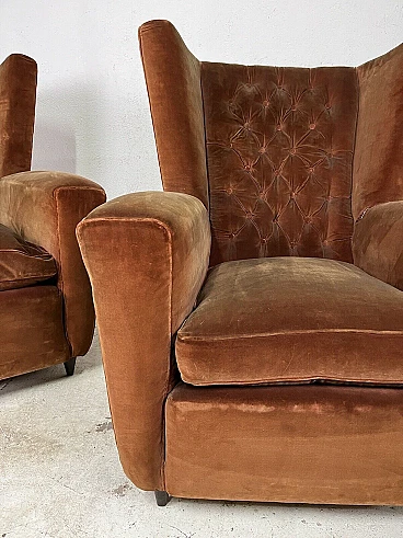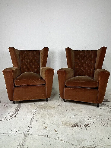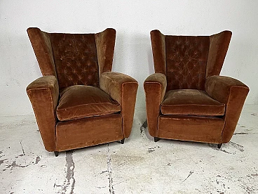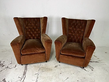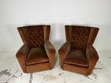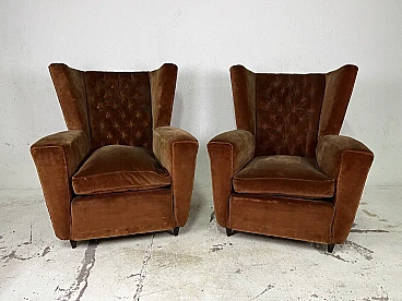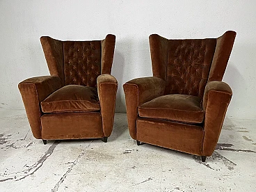 Pair of wooden and velvet armchairs by Paolo Buffa, 1950s