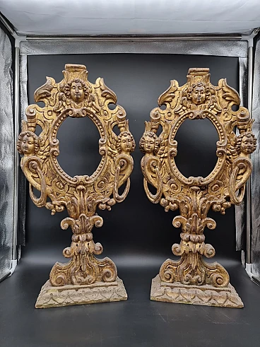 Pair of Sansovinesque reliquaries in carved lime wood, 17th century