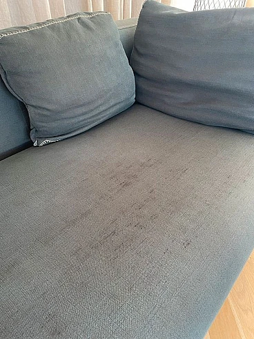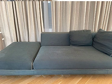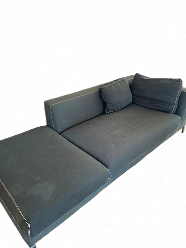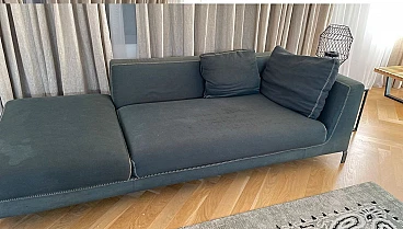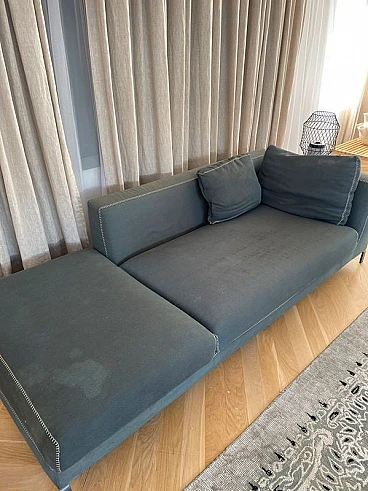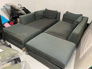 Elegant Ray sofa in Maxalto Serle fabric in Grey-Green. Design by Antonio Citterio for B&B Italia, 2000s. High-end model with generous dimensions, very comfortable. The covering is in soft, high-end Maxalto Serle smooth cotton fabric. Color: green-grey. The sofa has the characteristic of having very refined stitching in punto cavallo with a contrasting yarn. There are some stains only on the cushion padded seats. And the surface of the fabric is worn. For the rest it's OK. The covering is removable. Each sofa can be used as a single furnishing chaise longue. Or combining the two modules as you wish. With a modest expense you can restore new luster to the sofa with new upholstery. Two sofas are available. Purchase price of the two sofas in 2014: €18,000 Asking price for a single sofa: 3995 euros Asking price of the pair of sofas: 5995 euros Internal structure: steel tubes and profiles. Internal frame padding: cold-molded Bayfit® (Bayer®) flexible polyurethane foam, polyester fiber cover. Internal frame padding: differentiated density polyurethane profile, polyester fiber covering. Seat cushion padding: differentiated density profiled polyurethane, sterilized down, polyester fiber lining. Back cushion: filling: polyester fibre, type: with side edge. Legs: cast brushed aluminium. End caps: thermoplastic material. Measurements: L.230x P.97x H.72 cm - Seat height 42 cm. Weight: 74cm. Cushion included in the sofa.