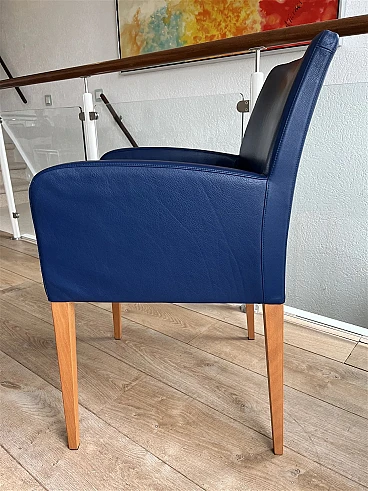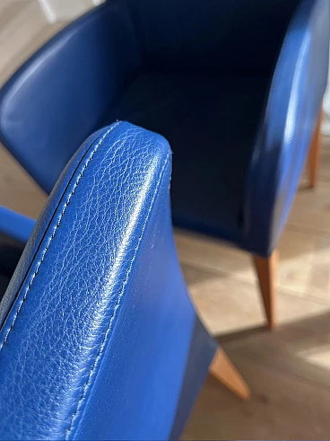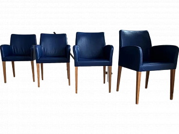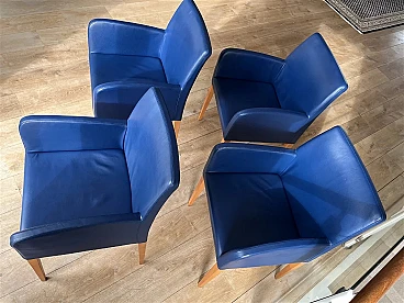 4 Liz blue grained leather armchairs by Poltorna Frau