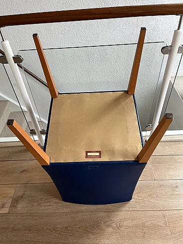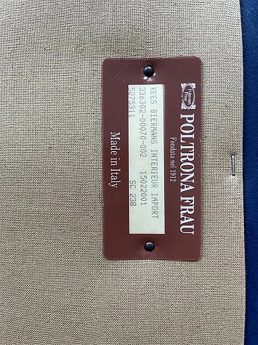 Four Liz small armchairs in blue grained leather by Poltrona Frau. Four Poltrona Frau Liz armchairs with armrests and blue leather upholstery (Pelle Frau® SC_ 248 Iris). The frame and legs of the Liz armchair are made of solid beech. The seat, shaped armrests and backrest are padded with polyurethane foam. The chairs are in good condition. The armrest of one chair has a small damage in the leather (see last photo). The springing of the seat is made of elastic straps. The padding is made of polyurethane foam. Upholstery in Pelle Frau® leather. The chairs are in very good condition. The armrest of one chair has a small damage in the leather (see last photo). And behind the backrest. Wall contact. Two points of wear (see photo). List price 1650 euro per chair. For the set of four pieces 6600 euro.