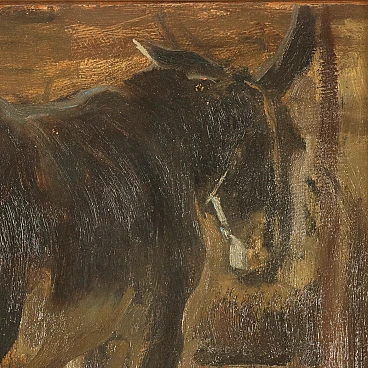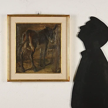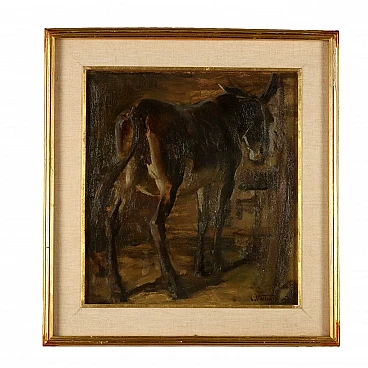 Carlo Vittori, Interior of a stable with donkey, oil on hardboard