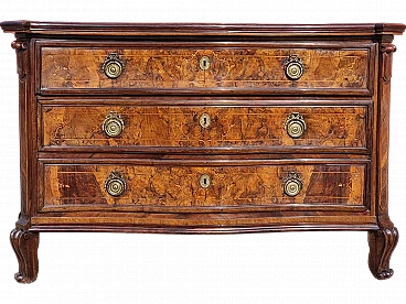 Briarwood commode with 3 drawers & shaped front & sides, 18th century