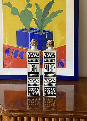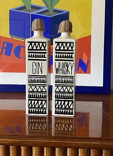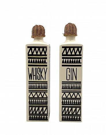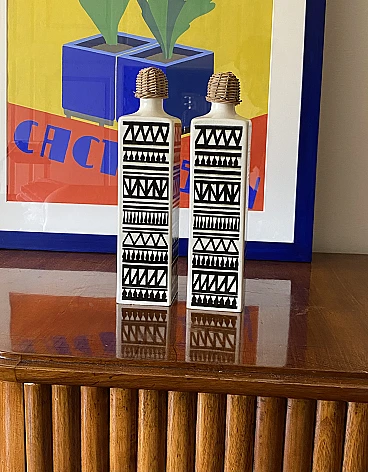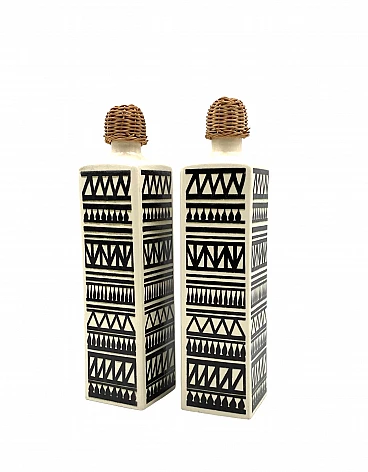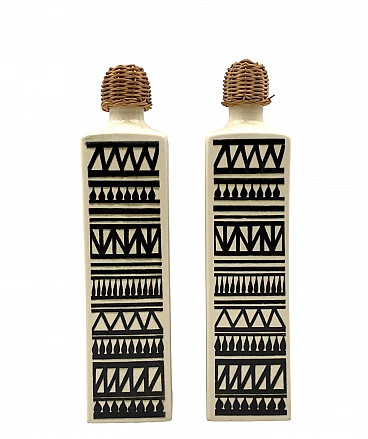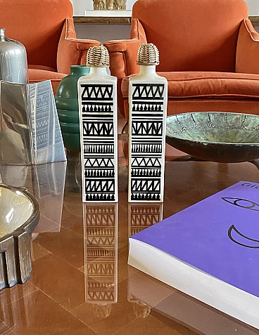 Pair of black & white ceramic bottles by Staffel Limburg, 1960s