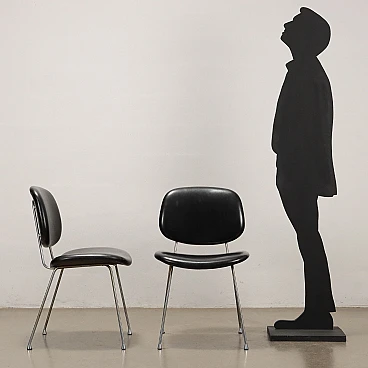Pair of chairs in black leatherette and chromed metal, 1960s
