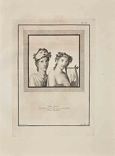 Ancient Roman Scene from the series "Antiquities of Herculaneum", is an original etching on paper realized by Giuseppe Aloja in the 18th Century. Signed on the plate. Good conditions. The etching belongs to the print suite “Antiquities of Herculaneum Exposed” (original title: “Le Antichità di Ercolano Esposte”), an eight-volume volume of engravings of the finds from the excavation of the ruins of Herculaneum in the Kingdom of Naples (now Campania, Italy). It was published between 1757 and 1792 by the Regia Stamperia, and copies were delivered to selected recipients across Europe. Despite the title, the Antiquity of Herculaneum shows objects from all the excavations undertaken by the Bourbons in the Gulf of Naples. These include Pompeii, Stabia and two sites of Herculaneum: Resina and Portici. The Bourbon King Carlo appointed fifteen scholars creating a new “Herculaneum Academy” to study the artifacts and publish the results of the archaeological excavations of the sites.The engravings are of high quality and the accompanying text shows a large scholarship. They were realized by 25 prominent artists involved by the King to prepare drawings and engravings on the finds, among which we can find Giovanni Elia Morghen, Carlo Nolli, Luigi Vanvitelli and Giovanni Battista Casanova.The “Antiquities” was designed more to amaze readers with the quality of the objects in the collection of the King of Naples than to be used in research., following and increasing the interest of 18th century society for the classical culture and Art in particular.Through the exaltation of the classical concept of proportions and harmony, the book was of inspiration to the neoclassical movement in Europe, giving artists and decorators access to a huge shop of Hellenistic motifs. Ref.: National Gallery (Washington), Mark J. Millard Architectural, IV (2000), no. 1; L. Garcia y Garcia, Nova bibliotheca pompeiana (2 v., 1998); Royal Institute of British Architects, British Architectural Library ... Early printed books, 1 (1994), no. 112. U. Pannuti, 'Incisori e disegnatori della Stamperia Reale di Napoli nel secolo XVIII: la pubblicazione delle Antichità di Ercolano', in Xenia antiqua, 9 (2000), p. 151-178; V. Trombetta, 'L'edizione de Le Antichità di Ercolano esposte' in Rendiconti dell'Accademia di Archeologia, lettere e belle arti di Napoli , 59 (1984), p.151-172.