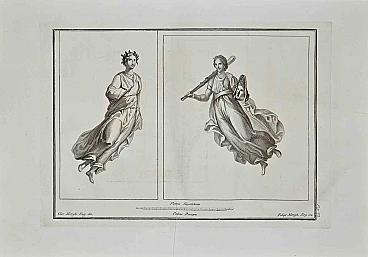 Giovanni Morghen, Ancient Roman Fresco from Herculaneum, Etching 18th century