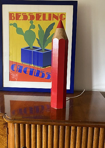 Red pencil shaped table lamp by Pierre Sala for Vilac, 1980s