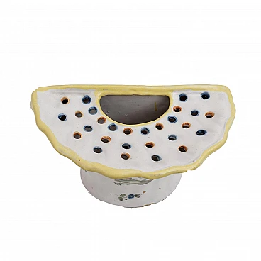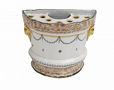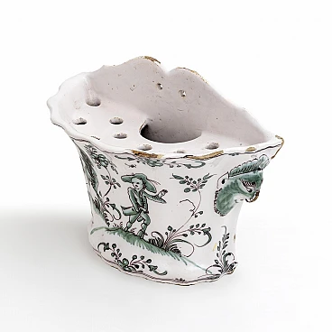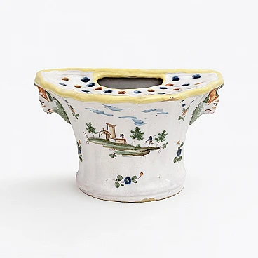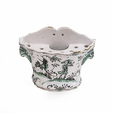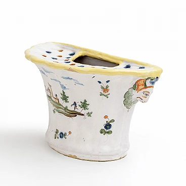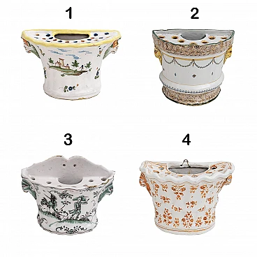 Four polychrome majolica planters, 18th-century. Entirely hand-painted, these planters were made in France, in the towns of Moustiers-Sainte-Marie and Allemagne-en-Provence; both are known to have been among the most famous French pottery centers. Four pieces available, price each (contact the seller to choose the one you want). No. 1 is by Moustier, Feraud manufacture, c. 1780-1790. It is 15.3 cm high, 24.5 cm wide and 13.1 cm deep. No. 2 is of Allemagne manufacture, c. 1780. It is 18.5 cm high, 24 cm wide, and 14.5 cm deep. No. 3 is probably Moustier, third quarter of the 1700s. It is 17 cm high, 21.5 cm wide and 10 cm deep. No. 4 is from Moustierers, mid-18th century. It is 13.5 cm high, 20 cm wide, and 13 cm deep. Presence of chips and imperfections consistent with age.