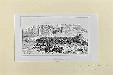 Assaut is an Original lithograph realized by Auguste Raffet (1804-1860).Good condition included a cream colored cardboard passpartout (36x53 cm).Titled, Dated on plate on the lower margin, signature on right corner.Denis Auguste Marie Raffet (1804 – 1860) was a French illustrator and lithographer. He was a student of Nicolas Toussaint Charlet, and was a retrospective painter of the Empire. At an early age he was apprenticed to a wood turner, but took up the study of art at evening classes. At the age of 18 he entered the workshop of Cabanel, where he applied his skill to the decoration of china, and where he met Rudor, from whom he received instruction in lithography, in the practice of which he was to rise to fame. Collect a very beautiful artwork of 19th century!