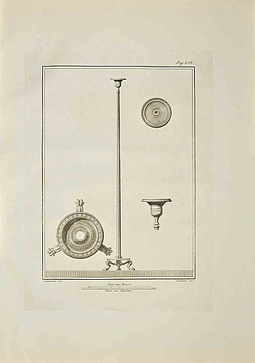 Ancient Roman Statue of Herculaneum from the series "Antiquities of Herculaneum", is an original etching on paper realized by R. Casanova in the 18th Century. Signed on the plate. Good conditions. The etching belongs to the print suite “Antiquities of Herculaneum Exposed” (original title: “Le Antichità di Ercolano Esposte”), an eight-volume volume of engravings of the finds from the excavation of the ruins of Herculaneum in the Kingdom of Naples (now Campania, Italy). It was published between 1757 and 1792 by the Regia Stamperia, and copies were delivered to selected recipients across Europe. Despite the title, the Antiquity of Herculaneum shows objects from all the excavations undertaken by the Bourbons in the Gulf of Naples. These include Pompeii, Stabia and two sites of Herculaneum: Resina and Portici. The Bourbon King Carlo appointed fifteen scholars creating a new “Herculaneum Academy” to study the artifacts and publish the results of the archaeological excavations of the sites.The engravings are of high quality and the accompanying text shows a large scholarship. They were realized by 25 prominent artists involved by the King to prepare drawings and engravings on the finds, among which we can find Giovanni Elia Morghen, Carlo Nolli, Luigi Vanvitelli and Giovanni Battista Casanova.The “Antiquities” was designed more to amaze readers with the quality of the objects in the collection of the King of Naples than to be used in research., following and increasing the interest of 18th century society for the classical culture and Art in particular.Through the exaltation of the classical concept of proportions and harmony, the book was of inspiration to the neoclassical movement in Europe, giving artists and decorators access to a huge shop of Hellenistic motifs. Ref.: National Gallery (Washington), Mark J. Millard Architectural, IV (2000), no. 1; L. Garcia y Garcia, Nova bibliotheca pompeiana (2 v., 1998); Royal Institute of British Architects, British Architectural Library ... Early printed books, 1 (1994), no. 112. U. Pannuti, 'Incisori e disegnatori della Stamperia Reale di Napoli nel secolo XVIII: la pubblicazione delle Antichità di Ercolano', in Xenia antiqua, 9 (2000), p. 151-178; V. Trombetta, 'L'edizione de Le Antichità di Ercolano esposte' in Rendiconti dell'Accademia di Archeologia, lettere e belle arti di Napoli , 59 (1984), p.151-172.