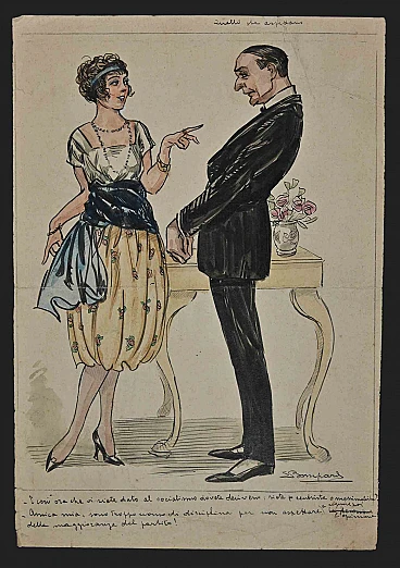 Those Who Wait is an original watercolored ink drawing on ivory-colored paper, in the 1920s realized by Luigi Bompard (1879-1953).Hand-signed in pen on the lower margin.In good condition, except for some small foxing and folding.The artwork is depicted through soft strokes in a well-balanced composition.