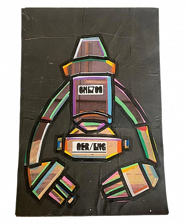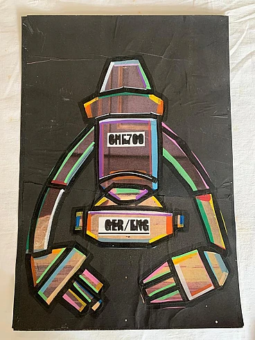 Renato Volpini, Useless Machine, collage and tempera, 1970s
