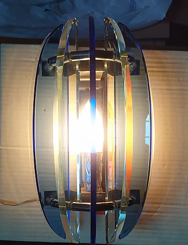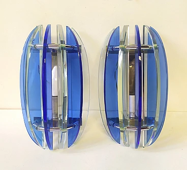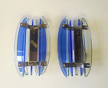Pair of blue glass & metal wall lights by Veca, 1970s