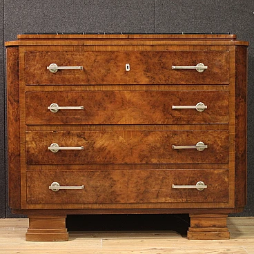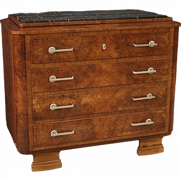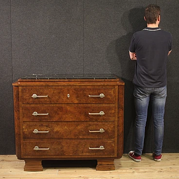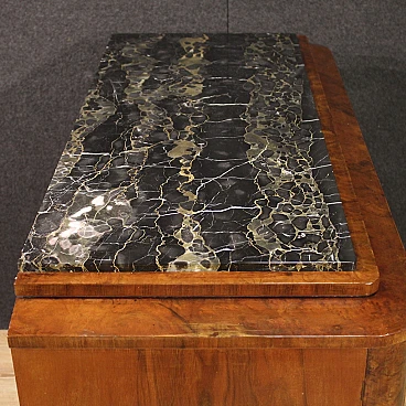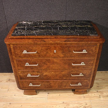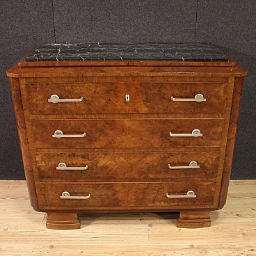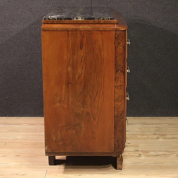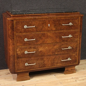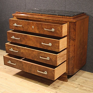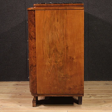 Art Deco walnut and walnut-root dresser with marble top, 1940s