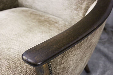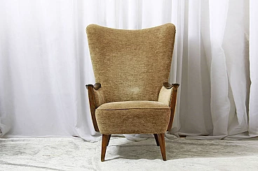Velvet armchair from the 50's in perfect condition. The upholstery has been overhauled and the wooden structure has been cleaned and polished. Dimensions (cm): Height: 95, seat 45, width 70