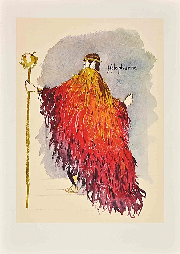 orothea Tanning, Holopherne, lithograph on Arches paper realized by Dorothea Tanning in 1972.Belongs to the suite "Judith". Limited edition of 500. Unsigned and unnumbered, as issued. The Suite was realized to illustrate the German translation of Jean Giraudoux's Judith theatrical play, in three acts, written in 1931 and performed in the same year at the Théâtre Pigalle in a staging by Louis Jouvet. The illustrations were created on the occasion of the performance of "Judith" at the Odéon Theater in 1961, in a staging by Jean-Louis Barrault. In those circumstances, the sets were designed by Max Ernst and the costumes were created by Dorothea Tanning.