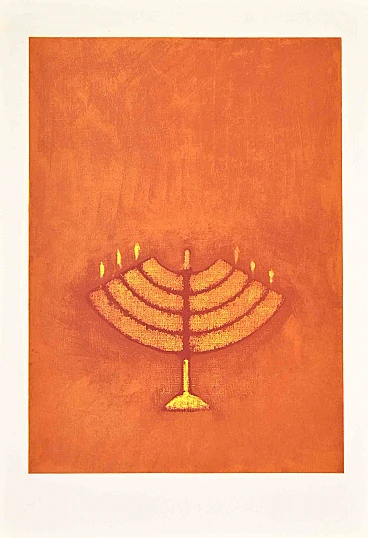 Menorah is a lithograph on Arches paper realized by Max Ernst in 1972.Belongs to the suite "Judith". Limited edition of 500.Unsigned and unnumbered, as issued.Godd conditions.The Suite was realized to illustrate the German translation of Jean Giraudoux's Judith theatrical play, in three acts, written in 1931 and performed in the same year at the Théâtre Pigalle in a staging by Louis Jouvet. The illustrations were created on the occasion of the performance of "Judith" at the Odéon Theater in 1961, in a staging by Jean-Louis Barrault. In those circumstances, the sets were designed by Max Ernst and the costumes were created by Dorothea Tanning.