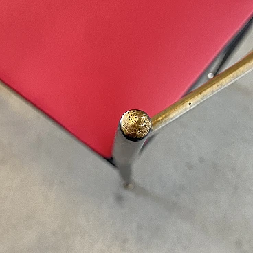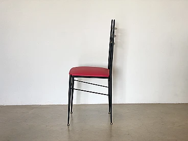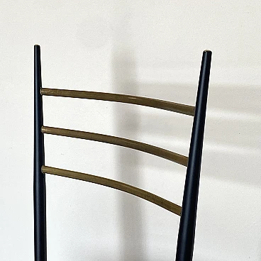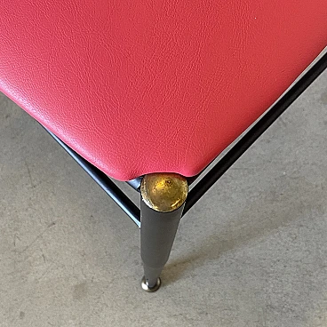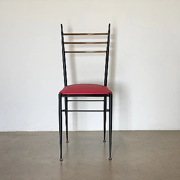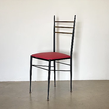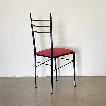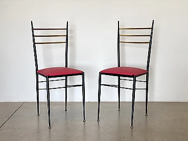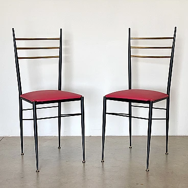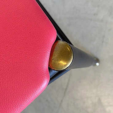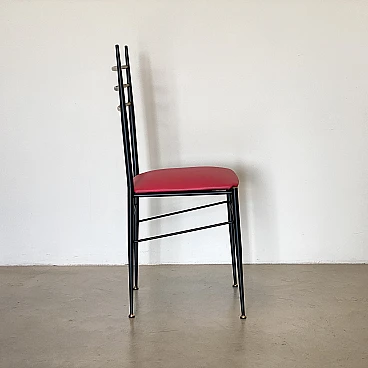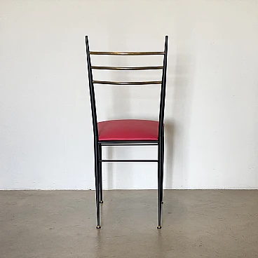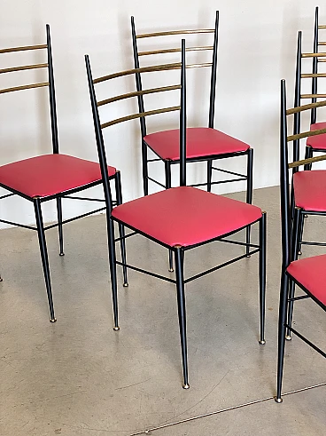 6 Chairs in black lacquered iron, fuchsia leatherette and brass, 1960s