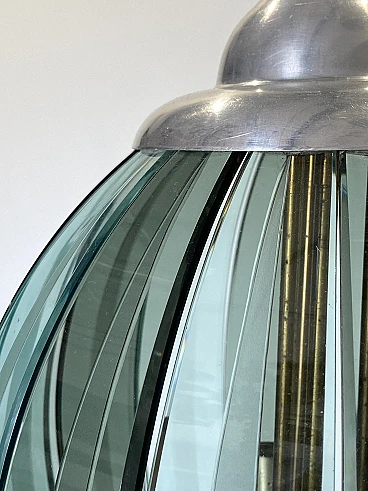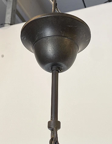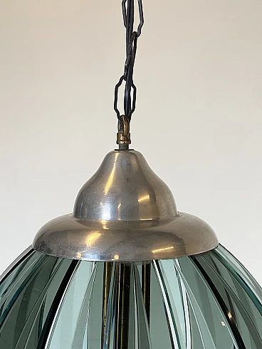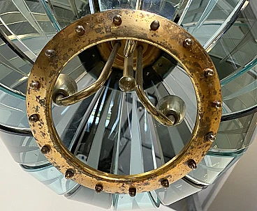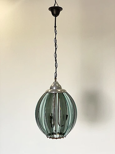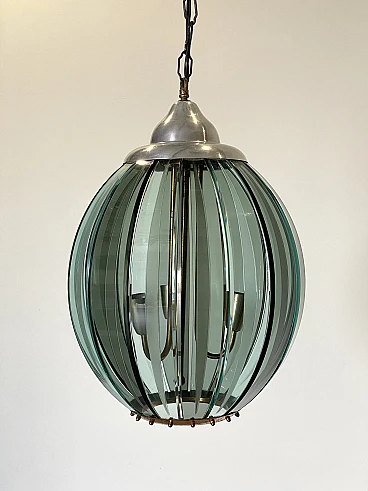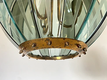 Lantern hanging lamp, 1970s. Brass and metal structure, smoked and transparent cut glass. Height of lantern only: 46 cm. Oxidation of the brass is present.