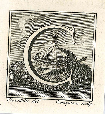 Gaspare Vanvitelli (Gaspar Van Wittel), Letter of the Alphabet C, Etching 18th century