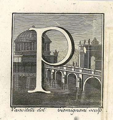 Gaspare Vanvitelli (Gaspar Van Wittel), Letter of the Alphabet P, Etching 18th century