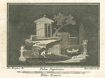 Ancient Roman Scene from the series "Antiquities of Herculaneum", is an original etching on paper realized by Giovanni Morghen in the 18th Century. Signed on the plate. Good conditions with some foxing. The etching belongs to the print suite “Antiquities of Herculaneum Exposed” (original title: “Le Antichità di Ercolano Esposte”), an eight-volume volume of engravings of the finds from the excavation of the ruins of Herculaneum in the Kingdom of Naples (now Campania, Italy). It was published between 1757 and 1792 by the Regia Stamperia, and copies were delivered to selected recipients across Europe. Despite the title, the Antiquity of Herculaneum shows objects from all the excavations undertaken by the Bourbons in the Gulf of Naples. These include Pompeii, Stabia and two sites of Herculaneum: Resina and Portici. The Bourbon King Carlo appointed fifteen scholars creating a new “Herculaneum Academy” to study the artifacts and publish the results of the archaeological excavations of the sites.The engravings are of high quality and the accompanying text shows a large scholarship. They were realized by 25 prominent artists involved by the King to prepare drawings and engravings on the finds, among which we can find Giovanni Elia Morghen, Carlo Nolli, Luigi Vanvitelli and Giovanni Battista Casanova.The “Antiquities” was designed more to amaze readers with the quality of the objects in the collection of the King of Naples than to be used in research., following and increasing the interest of 18th century society for the classical culture and Art in particular.Through the exaltation of the classical concept of proportions and harmony, the book was of inspiration to the neoclassical movement in Europe, giving artists and decorators access to a huge shop of Hellenistic motifs. Ref.: National Gallery (Washington), Mark J. Millard Architectural, IV (2000), no. 1; L. Garcia y Garcia, Nova bibliotheca pompeiana (2 v., 1998); Royal Institute of British Architects, British Architectural Library ... Early printed books, 1 (1994), no. 112. U. Pannuti, 'Incisori e disegnatori della Stamperia Reale di Napoli nel secolo XVIII: la pubblicazione delle Antichità di Ercolano', in Xenia antiqua, 9 (2000), p. 151-178; V. Trombetta, 'L'edizione de Le Antichità di Ercolano esposte' in Rendiconti dell'Accademia di Archeologia, lettere e belle arti di Napoli , 59 (1984), p.151-172.
