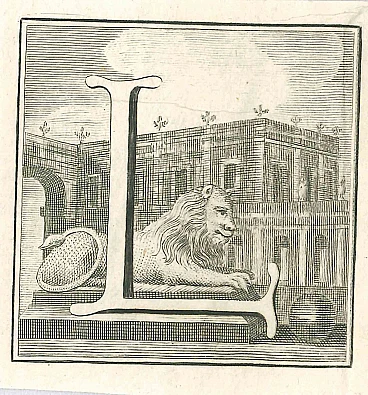 Gaspare Vanvitelli (Gaspar Van Wittel), Letter of the Alphabet L, Etching 18th century