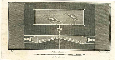 Ancient Roman Scene from the series "Antiquities of Herculaneum", is an original etching on paper realized by Nicolo Fiorillo in the 18th Century. Signed on the plate. Good conditions with some foxing. The etching belongs to the print suite “Antiquities of Herculaneum Exposed” (original title: “Le Antichità di Ercolano Esposte”), an eight-volume volume of engravings of the finds from the excavation of the ruins of Herculaneum in the Kingdom of Naples (now Campania, Italy). It was published between 1757 and 1792 by the Regia Stamperia, and copies were delivered to selected recipients across Europe. Despite the title, the Antiquity of Herculaneum shows objects from all the excavations undertaken by the Bourbons in the Gulf of Naples. These include Pompeii, Stabia and two sites of Herculaneum: Resina and Portici. The Bourbon King Carlo appointed fifteen scholars creating a new “Herculaneum Academy” to study the artifacts and publish the results of the archaeological excavations of the sites.The engravings are of high quality and the accompanying text shows a large scholarship. They were realized by 25 prominent artists involved by the King to prepare drawings and engravings on the finds, among which we can find Giovanni Elia Morghen, Carlo Nolli, Luigi Vanvitelli and Giovanni Battista Casanova.The “Antiquities” was designed more to amaze readers with the quality of the objects in the collection of the King of Naples than to be used in research., following and increasing the interest of 18th century society for the classical culture and Art in particular.Through the exaltation of the classical concept of proportions and harmony, the book was of inspiration to the neoclassical movement in Europe, giving artists and decorators access to a huge shop of Hellenistic motifs. Ref.: National Gallery (Washington), Mark J. Millard Architectural, IV (2000), no. 1; L. Garcia y Garcia, Nova bibliotheca pompeiana (2 v., 1998); Royal Institute of British Architects, British Architectural Library ... Early printed books, 1 (1994), no. 112. U. Pannuti, 'Incisori e disegnatori della Stamperia Reale di Napoli nel secolo XVIII: la pubblicazione delle Antichità di Ercolano', in Xenia antiqua, 9 (2000), p. 151-178; V. Trombetta, 'L'edizione de Le Antichità di Ercolano esposte' in Rendiconti dell'Accademia di Archeologia, lettere e belle arti di Napoli , 59 (1984), p.151-172.