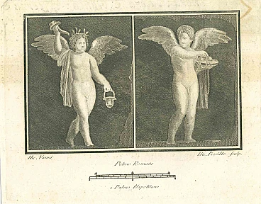 Ancient Roman Scene from the series "Antiquities of Herculaneum", is an original etching on paper realized by Nicola Fiorillo in the 18th Century. Signed on the plate. Good conditions with some foxing. The etching belongs to the print suite “Antiquities of Herculaneum Exposed” (original title: “Le Antichità di Ercolano Esposte”), an eight-volume volume of engravings of the finds from the excavation of the ruins of Herculaneum in the Kingdom of Naples (now Campania, Italy). It was published between 1757 and 1792 by the Regia Stamperia, and copies were delivered to selected recipients across Europe. Despite the title, the Antiquity of Herculaneum shows objects from all the excavations undertaken by the Bourbons in the Gulf of Naples. These include Pompeii, Stabia and two sites of Herculaneum: Resina and Portici. The Bourbon King Carlo appointed fifteen scholars creating a new “Herculaneum Academy” to study the artifacts and publish the results of the archaeological excavations of the sites.The engravings are of high quality and the accompanying text shows a large scholarship. They were realized by 25 prominent artists involved by the King to prepare drawings and engravings on the finds, among which we can find Giovanni Elia Morghen, Carlo Nolli, Luigi Vanvitelli and Giovanni Battista Casanova.The “Antiquities” was designed more to amaze readers with the quality of the objects in the collection of the King of Naples than to be used in research., following and increasing the interest of 18th century society for the classical culture and Art in particular.Through the exaltation of the classical concept of proportions and harmony, the book was of inspiration to the neoclassical movement in Europe, giving artists and decorators access to a huge shop of Hellenistic motifs. Ref.: National Gallery (Washington), Mark J. Millard Architectural, IV (2000), no. 1; L. Garcia y Garcia, Nova bibliotheca pompeiana (2 v., 1998); Royal Institute of British Architects, British Architectural Library ... Early printed books, 1 (1994), no. 112. U. Pannuti, 'Incisori e disegnatori della Stamperia Reale di Napoli nel secolo XVIII: la pubblicazione delle Antichità di Ercolano', in Xenia antiqua, 9 (2000), p. 151-178; V. Trombetta, 'L'edizione de Le Antichità di Ercolano esposte' in Rendiconti dell'Accademia di Archeologia, lettere e belle arti di Napoli , 59 (1984), p.151-172.