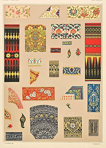 Carlo Jacobucci, Decorative Motifs -Indian Style, Lithograph 19th century
