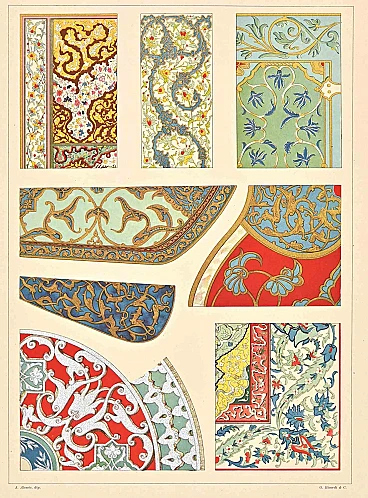 Andrea Alessio, Decorative Motifs - Persian Styles, Lithograph 19th century