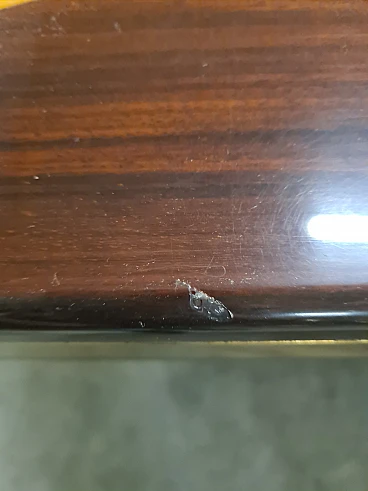 Its severe but chic style means it can be placed in all environments. The table has no structural defects, but does have lines and signs of time on the polyester lacquer, as visible in the photo.