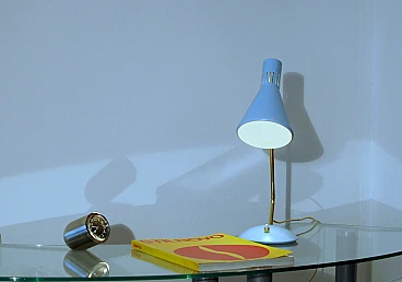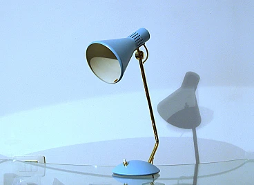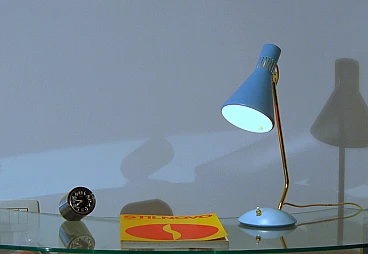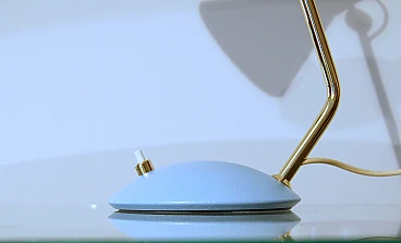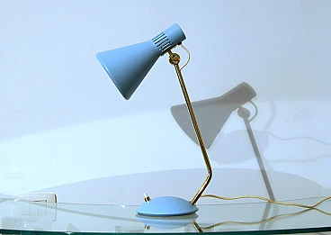 Light blue 8042 brass table lamp by Stilnovo, 1959