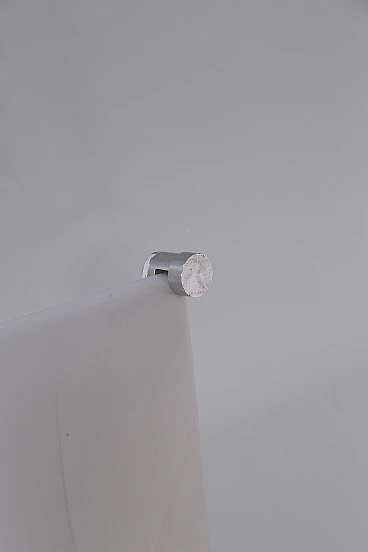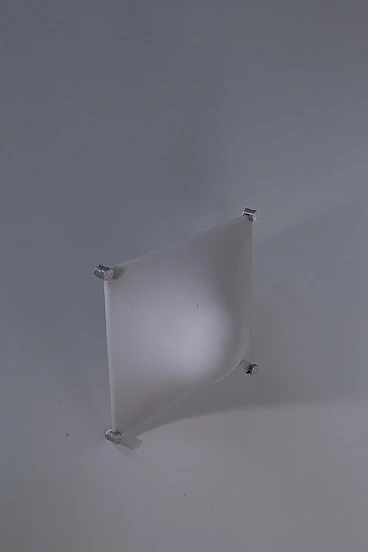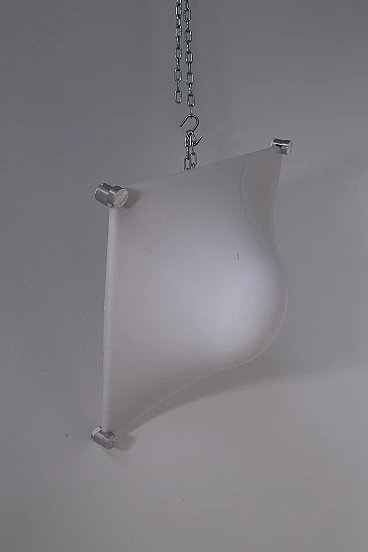 Experience the allure of Italian design with the Elio Martinelli ceiling lamp, a quintessential piece from the 1970s. This lamp, designed by the renowned Elio Martinelli for Martinelli Luce, showcases the innovative spirit of the era with its elegant form and functional brilliance. Crafted with meticulous attention to detail, the lamp features natural aluminum mounting brackets that complement its robust painted metal base, illustrating the era's fascination with new materials and techniques. The lamp's highlight is its white opal methacrylate diffuser, which softens the emitted light to create a warm, inviting glow, perfect for any contemporary or vintage setting. This piece remains in good vintage condition, with only slight signs of wear consistent with its age and use—testament to its durability and the quality of its construction. These subtle signs of age add a layer of authenticity and charm to the lamp, making it not just a functional item but a piece of history. Ideal for those who appreciate the fusion of art and functionality, the Elio Martinelli ceiling lamp is a statement of timeless elegance. It serves as a captivating focal point in any room, perfectly suited to both modern and retro interiors. This lamp is more than just lighting; it is a piece of Italian design heritage that continues to inspire and fascinate.