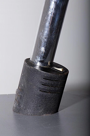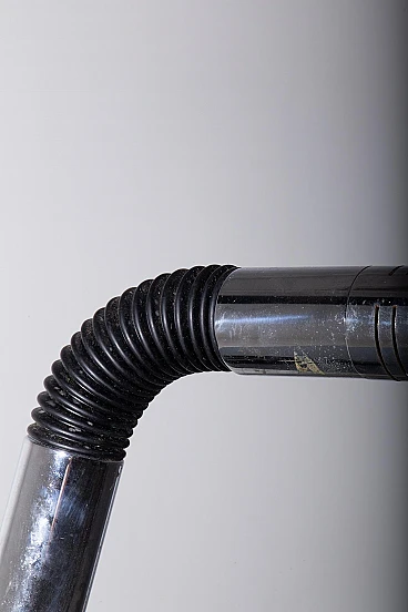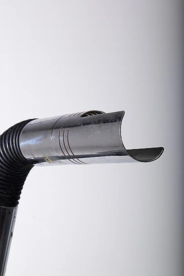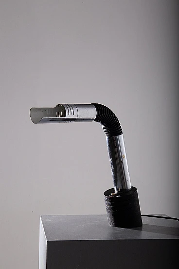 Sankey table lamp by Ezio Bellini, 1970s. This piece masterfully combines functionality and aesthetic appeal, featuring an elegant metallic finish and an innovative jointed element that allows for flexible positioning to illuminate your space exactly where needed. The compact design and refined curves echo the futuristic trends of its time, while offering a touch of sophistication that complements any modern or retro decor. Its history is visible in the slight signs of wear, which tell a story of decades of use, adding character and authenticity to this striking lamp. It is important to note that although the lamp retains its original charm, it requires professional rewiring to meet current safety standards. This detail not only ensures safety but also improves the functionality of the lamp, allowing it to integrate perfectly into contemporary living spaces. This creation by Ezio Bellini is much more than just a lamp, it is a piece of design history, ideal for those who appreciate the art of the past and seek to bring a unique historical perspective into their living environments. Whether used as a focal point in a study, as a conversation piece in a living room or as ambient lighting in a bedroom, the Sankey Lamp is sure to enrich any space with its alluring presence and heritage.